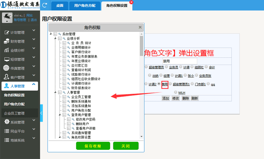 2.【人事管理】-【角色权限设置】-是否有勾选权限禁用