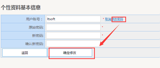 3.点击【修改密码】展示密码修改信息,输入您原始密码和新密码后,点【确认修改】即可
